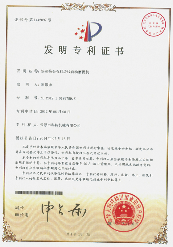 企業(yè)組建了“云浮市石材機(jī)械裝備工程技術(shù)研究開(kāi)發(fā)中心”,并與高校和科研院所密切合作,致力于光機(jī)電一體化產(chǎn)品的研發(fā)、生產(chǎn)、銷(xiāo)售和服務(wù)。主要產(chǎn)品有框架鋸、全自動(dòng)連續(xù)磨拋機(jī)、橋式自動(dòng)切割機(jī)、全自動(dòng)仿形石線機(jī)、數(shù)控金剛石繩鋸、裁切機(jī)等。產(chǎn)品具有自動(dòng)化程度高、加工精度高和生產(chǎn)效率高等特點(diǎn)。產(chǎn)品除國(guó)內(nèi)銷(xiāo)售外,還出口到歐美、東南亞、韓國(guó)、印度、中東、非洲、俄羅斯、澳大利亞等國(guó)家和地區(qū),深受用戶好評(píng)。“橋式自動(dòng)切割機(jī)”被認(rèn)定為廣東省高新技術(shù)產(chǎn)品,擁有發(fā)明專利1項(xiàng)、實(shí)用新型專利1項(xiàng)。